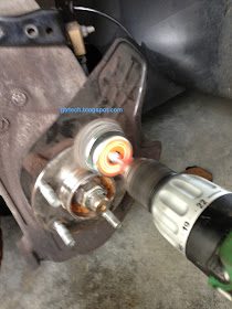Ironically, everything seemed to work but only temporarily and the noise came back the only lowest common denominator was that the wheel was removed and put back. It then dawned up me that that every time the wheel is removed or any work is done floating rotors move ever so slightly. So as a paid service to my dealership, since it is not considered a warranty fix, I had GT-R master tech removed the rotors completely off the hub and realized that there was a considerable amount of rust on both the hub and rotor; the back of the rotor which looked like nooks and crannies of an english muffin.